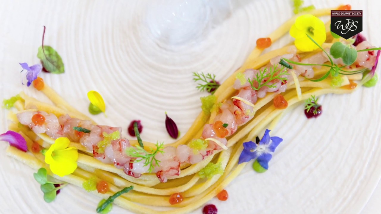 Chef Giorgio Trovato, representing Apulian and international gastronomy by presenting his plate ‘𝑺𝒑𝒂𝒈𝒉𝒆𝒕𝒕𝒊 𝒇𝒓𝒆𝒔𝒄𝒉𝒊, 𝑮𝒂𝒎𝒃𝒆𝒓𝒐 𝒗𝒊𝒐𝒍𝒂, 𝒇𝒊𝒏𝒈𝒆𝒓 𝑳𝒊𝒎𝒆, 𝑪𝒂𝒗𝒊𝒂𝒍𝒆 𝒅𝒊 𝑾𝒂𝒔𝒂𝒃𝒊 𝒆 𝑭𝒊𝒐𝒓𝒊 𝒆𝒅 𝑬𝒓𝒃𝒆 𝒆𝒅𝒊𝒃𝒊𝒍𝒊’ [𝒇𝒓𝒆𝒔𝒉 𝑺𝒑𝒂𝒈𝒉𝒆𝒕𝒕𝒊, 𝒑𝒖𝒓𝒑𝒍𝒆 𝑺𝒉𝒓𝒊𝒎𝒑, 𝒇𝒊𝒏𝒈𝒆𝒓 𝑳𝒊𝒎𝒆, 𝑾𝒂𝒔𝒂𝒃𝒊 𝑪𝒂𝒗𝒊𝒂𝒓, 𝒂𝒏𝒅 𝒆𝒅𝒊𝒃𝒍𝒆 𝒇𝒍𝒐𝒘𝒆𝒓𝒔 𝒂𝒏𝒅 𝒉𝒆𝒓𝒃𝒔] during the 2018 edition of the World Gourmet Society video challenge.