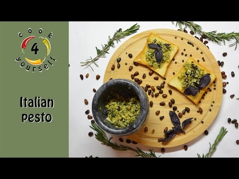 This is our version of pesto sauce with fresh basil, pine nuts, olive oil, cheese, garlic. Fresh and easy sauce for any holidays. Italian pesto sauce is suitable as an addition to the wine. Full recipe: