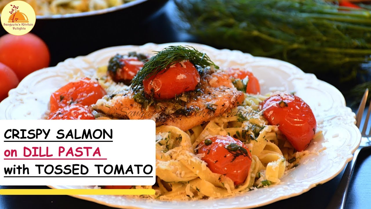 #CrispySalmon #DillSaucePasta #TossedTomato