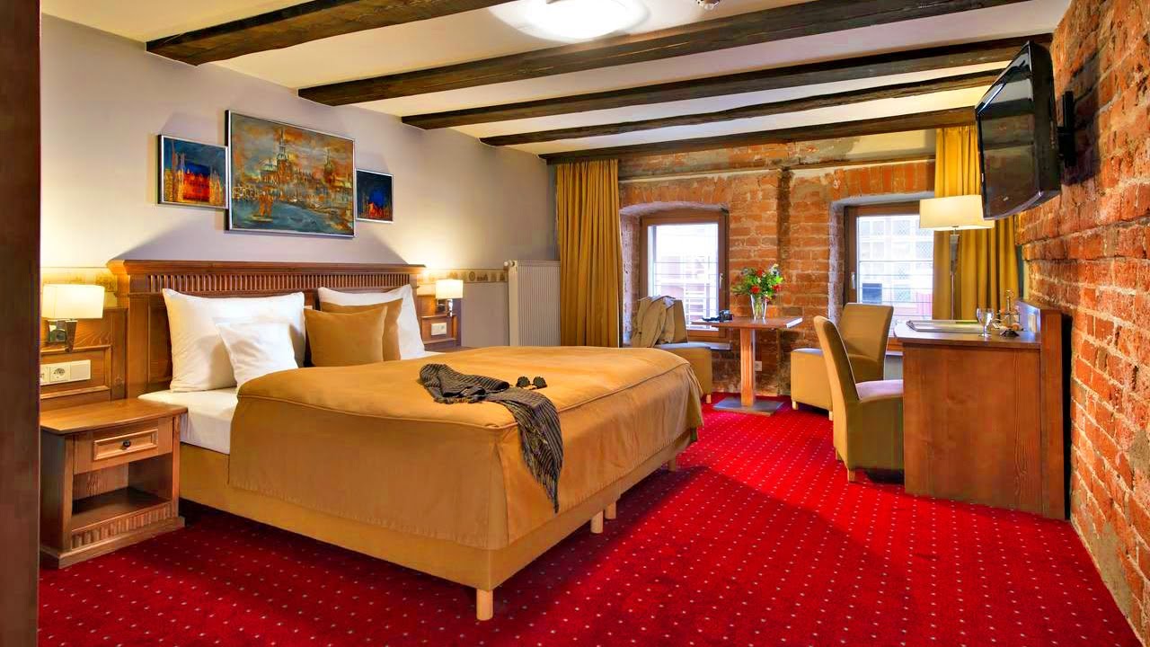 The historic Hotel Scheelehof Stralsund comprises rooms of different sizes with different ceiling heights. The minimum size of all rooms is 18 m². All rooms are equipped with a flat-screen TV, a minibar and a bathroom with a shower. You will receive a free bottle of water in the room upon arrival.