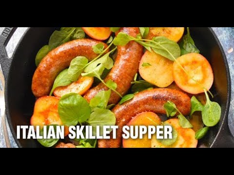 Sausage and apples were made for each other! Sweet Italian sausages and caramelized apples, simmered in wine in an iron skillet. Toss in some greens… Perfect-o! farmitalianItalian RecipesItalyItaly RecipesrecipeskilletsupperSwaggerty39svideoVlogYouTube