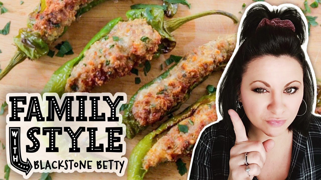 Betty is going to take these long hot Italian peppers and stuff ’em. Sausage, cheese, and everything else to make your mouth water. Get more Family Style here —