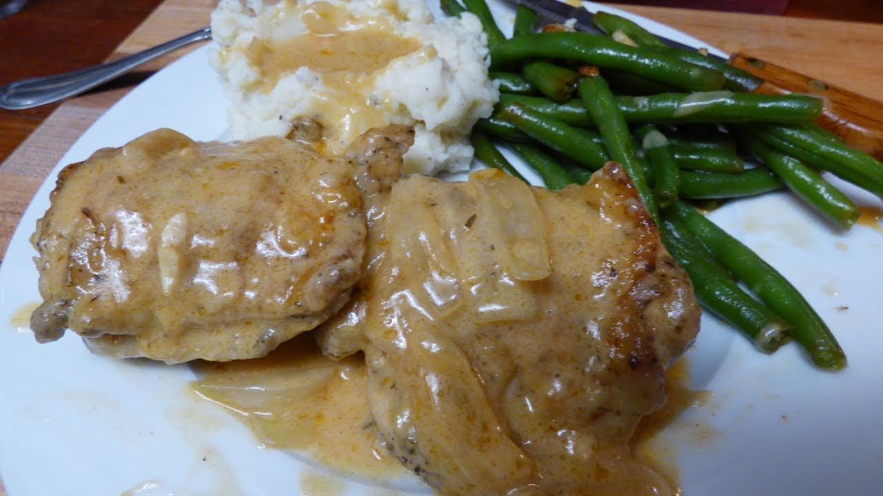 I seasoned the chicken with Italian Seasoning, Salt, Pepper and Onion powder. That’s Sweet Hungarian Paprika I added to the Onions and Garlic. I forgot to season the gravy with salt and pepper (blamed on the wine). Gravy was Chicken Broth and heavy Cream added as needed.