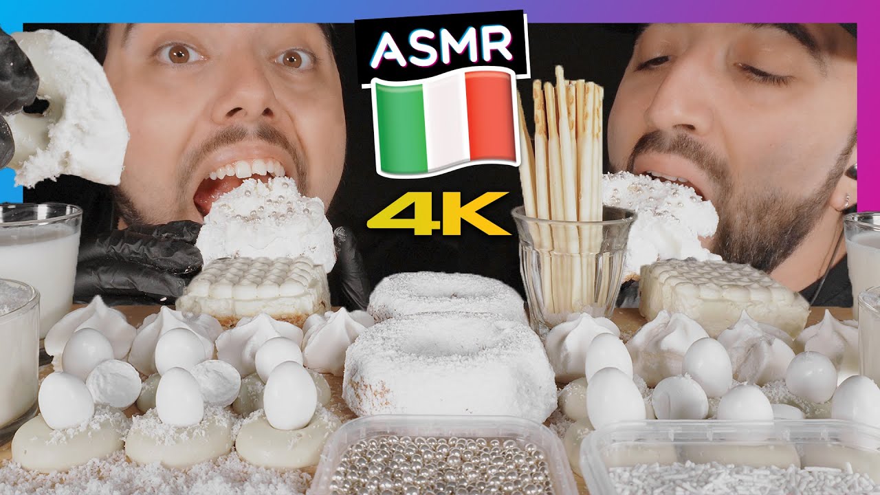 Nel video ASMR MUKBANG di oggi tanti squisiti dolci di colore bianco.