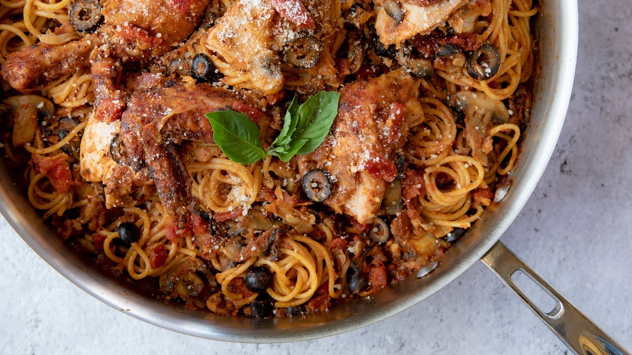 I like to call this ‘Cucina della Nonna”…grandma’s cooking. First, Bella Sun Luci Tomato-Artichoke Pasta Sauce tastes like an Italian grandma made it. Add a perfectly roasted chicken cut up into pieces, a pound of al dente spaghetti (or any excellent quality pasta shape), then the cacciatore-style vegetables and you’ll have a meal that will transport you to the old world, to grandma’s dining room table, her in her apron, serving big platters of steaming hot delicious food. – Chef Richie
