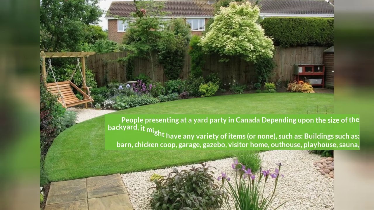 A playground being constructed for a homeowner’s back backyard as part of a handyman project. People presenting at a yard party in Canada Depending upon the size of the backyard, it might have any variety of items (or none), such as: Buildings such as: barn, chicken coop, garage, gazebo, visitor home, outhouse, playhouse, sauna, shed, smokehouse, workshop, etc.