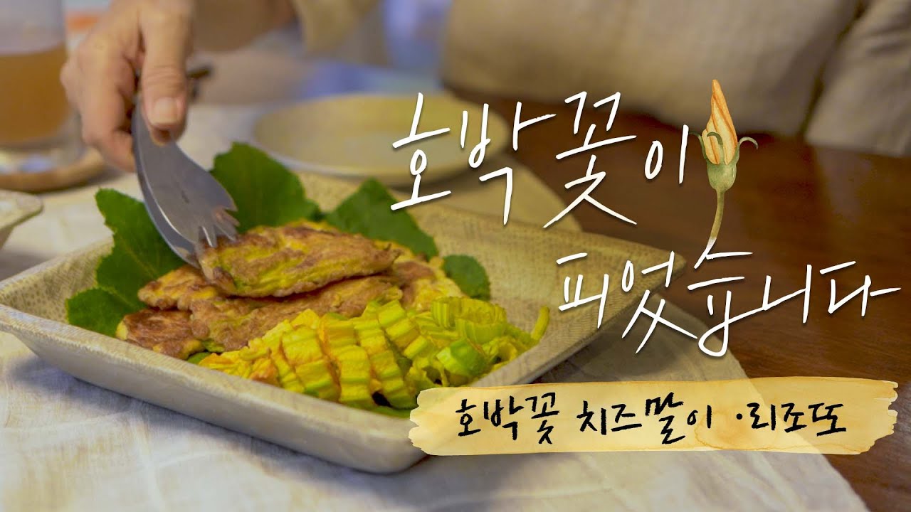 메뉴는 호박꽃 치즈말이와 호박꽃 리조또에요.