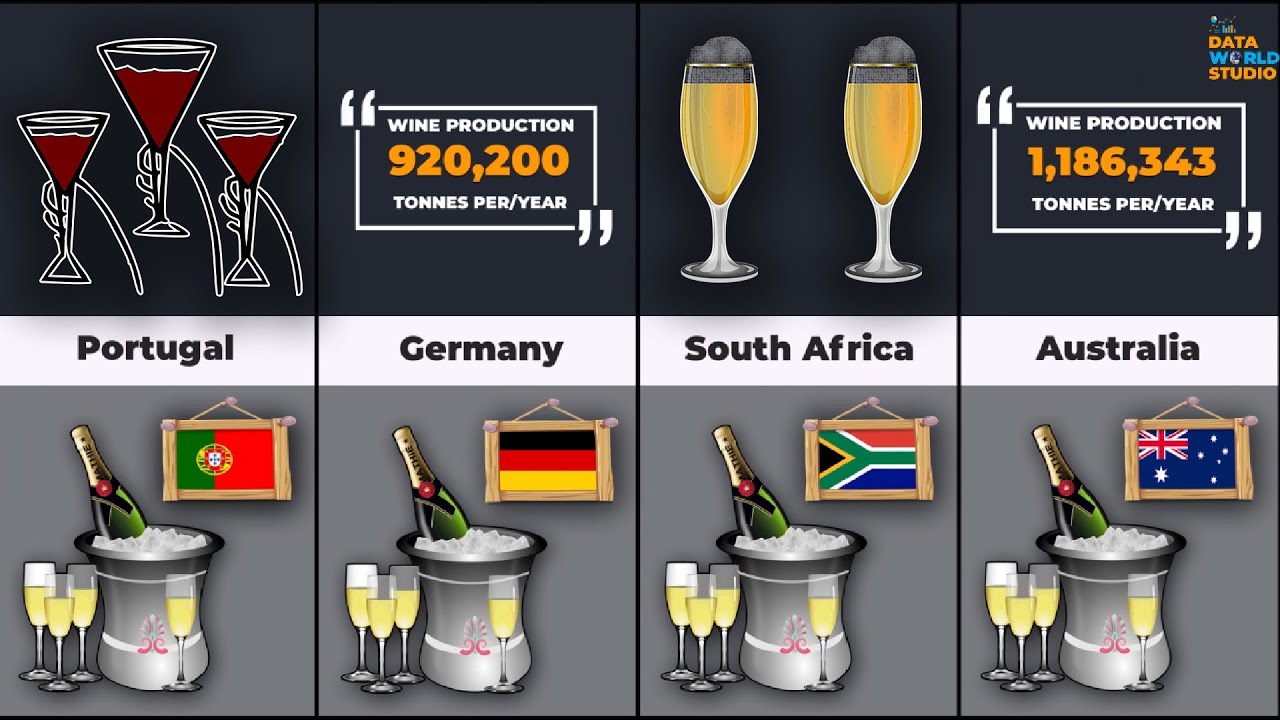 Their data show a total worldwide production of 31 million tonnes of wine with the top 15 producing countries accounting for over 90% of the total.