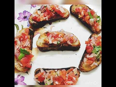 This video is created to see how to prepare bruschetta recipe. It is an Italian recipe, which is very easy to prepare. The toppings can be any vegetable or even non veg toppings can be made. But i have done a pure vegetarian recipe with only onion and tomato. The main ingredient in this bruschetta recipe is olive oil and garlic.
