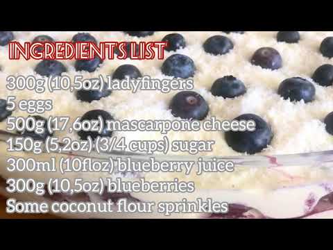 This is a different version of classic tiramisù, biscuits are dipped in blueberry juice instead of coffee, you can also prepare it with strawberries or raspberries.