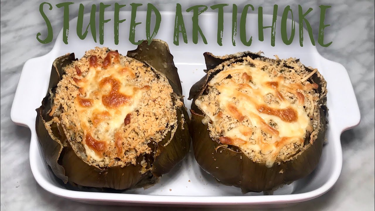 Mix together all the dry ingredients and leave aside. clean the artichoke, cut the bulb, and clean off the choke with a spoon. Stuff with the parmesan mixture making sure it goes in each layer. Place them into your baking pan, add the. wine, the remaining mixture on top, and the lemon juice. Close it with foil and bake for 30 minutes at 360F/180C. After 30 minutes take off the foil and bake for 20 more minutes.
