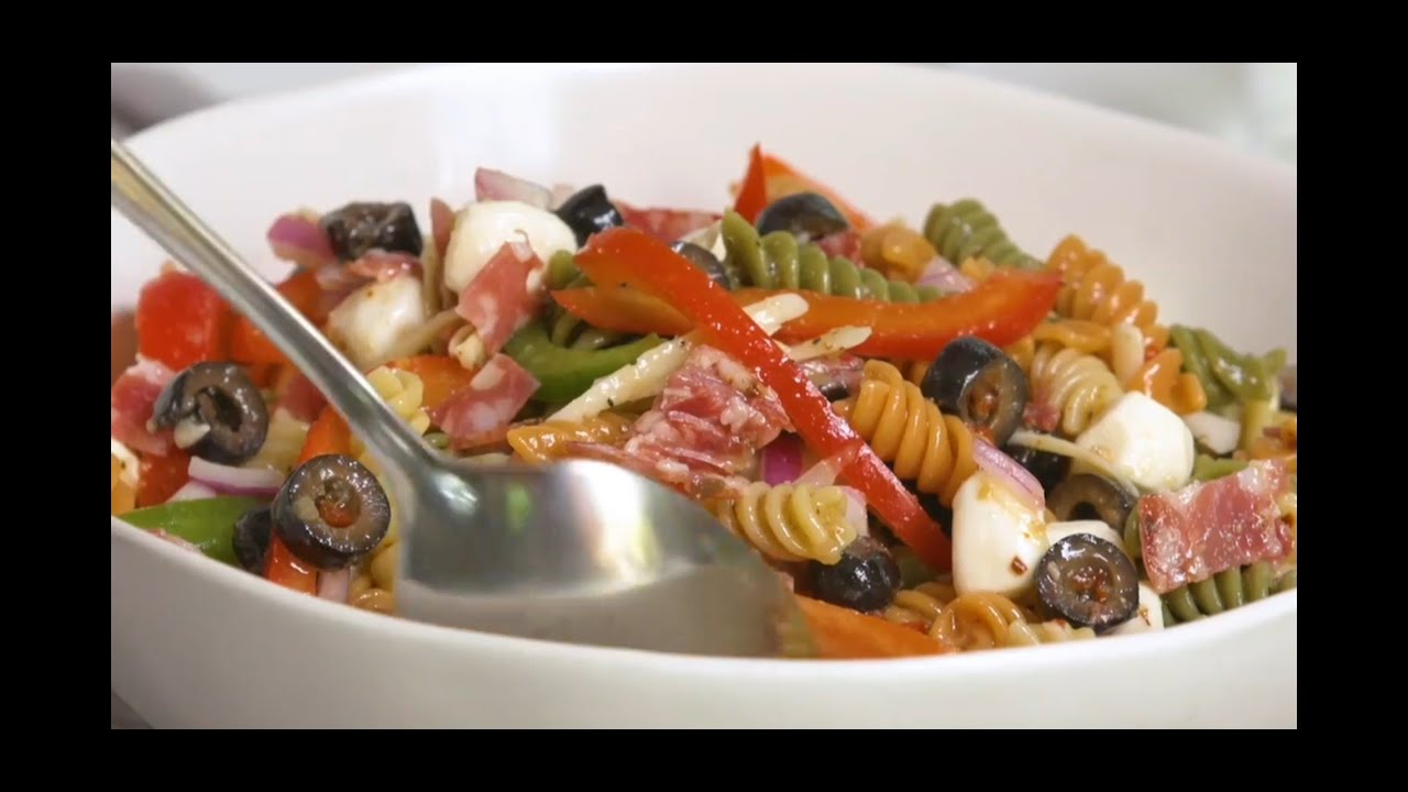 وصفة سلطة المعكرونة الإيطالية مليئة بالخضروات الطازجة والملونة والجبن والسلامي. قلبي المعكرونة المفضلة لديك لتحضير طبق لا ينسى.
