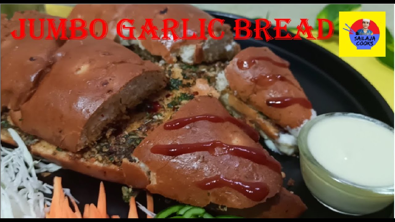 JUMBO GARLIC BREAD is simple tasty and spicy Indian recipes for starters , “sailaja cooks” YouTube channel shows easy Hyderabad restaurant style tasty JUMBO GARLIC BREAD.