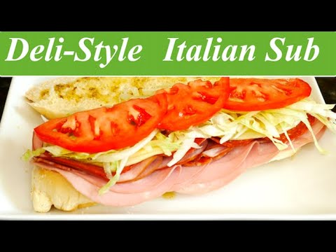 RECIPE: Deli-Style Classic Italian Sub Hi Guys, today I’ll show you How to Make an Italian Sub. This is one of my favorite sandwiches to order at a deli and it is simple to make at home. An Italian Sub is made with a variety of Italian meats. I’m using mortadella, calabrese salami, pepperoni and boiled ham. I wanted to get capicola but there was none at the store. You can use any variety of Italian meats for this recipe. For the cheese, I’m using provolone which is what you generally find in an Italian sub. Shredded iceberg lettuce for crunch, thinly sliced beefsteak tomatoes or plum tomatoes. These are pepperoncini which add tang and a little heat to the sub. This is optional but I love it in my subs. They come in a jar whole or sliced. I had the whole ones so I just sliced it for the sub. Thinly sliced yellow onion. Leave it in cold water for about 10 minutes. Of course you need a nice long roll. At a deli, they’ll sprinkle oil, vinegar and oregano on the sandwich. I like to make the dressing in a bowl so it’s easier to use. You can substitute a bottled Italian dressing if you don’t want to make your own. To a bowl, add red wine vinegar, olive oil, sugar, salt, ground black pepper and dried oregano. Whisk this and that’s it for the simple dressing. You can substitute white vinegar, apple cider vinegar and a vegetable or canola oil for the dressing. Slice your roll in half lengthwise. Drain the onion and pat them dry. Spoon the dressing on the top and bottom. Layer the meats, start with mortadella, salami, boiled ham and pepperoni, provolone cheese, sliced onion, shredded lettuce, pour a little dressing over the lettuce, sliced tomato, cut it in half if it’s loo large, plum tomatoes are the perfect size for this sandwich because they are smaller and you don’t have to cut them in half. Top with pepperoncini if you’re using it. And here’s the Italian Sub that tastes even better than the ones from the deli. A really satisfying sandwich that you’ll make often. I do hope you try this and let me know how you like it. Subscribe and I’ll see you next time. Thanks for watching 🙂