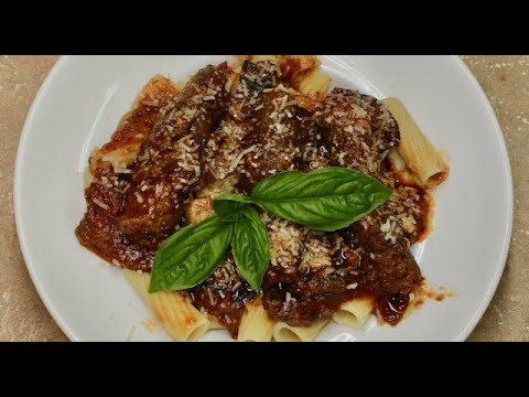 When you pasta is almost done, drop in your stringless braciole to warm back up.