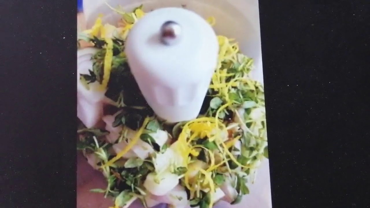 • In a small chopper add in the thyme, garlic, shallots, celery. Blitz until chopped finely.