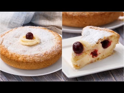 Put 2/3 of the dough into the mold. Put custard and cherries on the dough. Cover with 1/3 of the dough. Join the edges well. Grease the top of the pie with butter. Sprinkle with sugar. Bake for 30 minutes at 180 ° C / 350 ° F.