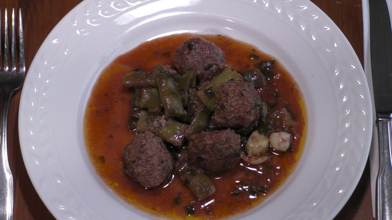 Cooking at home. Lamb Meatballs and Italian Green Beens in tomato sauce. One-pot meal. Delicious, healthy and rich dish. Great for lunch or dinner. Can be served itself, or on top of your favorite pasta, couscous, rice or buckwheat kasha. Easy to cook at home. Comfort food. Gluten free. KETO friendly.