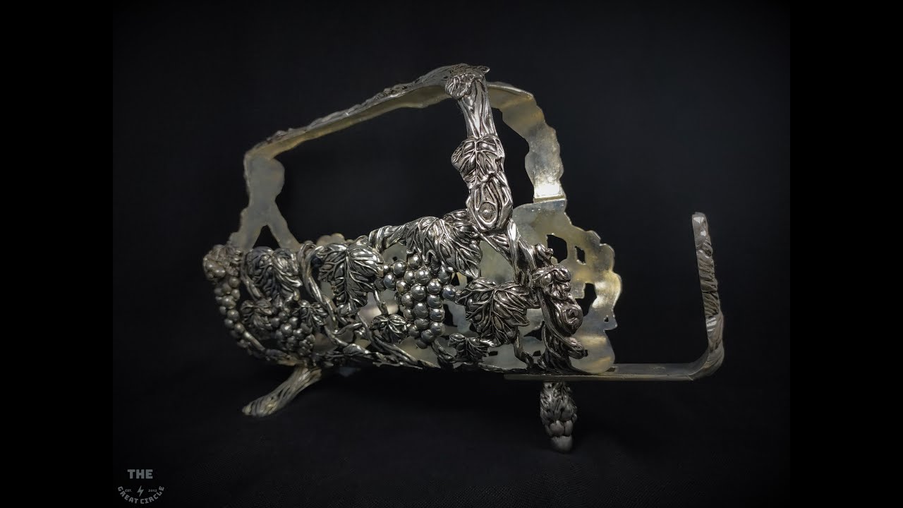 An early 30th-century silver plated wine bottle cradle cast with grapes and vine leaves and entwined vine handle, it is unavoidable for outside and inside home décor! And it is satisfactory to use. 👌 🔥