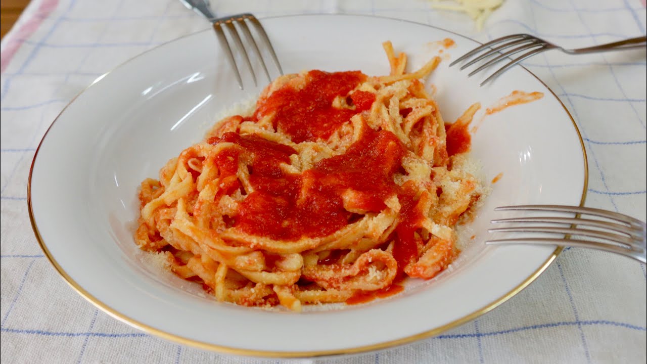 Pasta names change from village to village. This was filmed in Lavello, Basilicata; Elisabetta and Lucia make maccarunata (the spelling is theirs) which is also known as troccoli elsewhere.