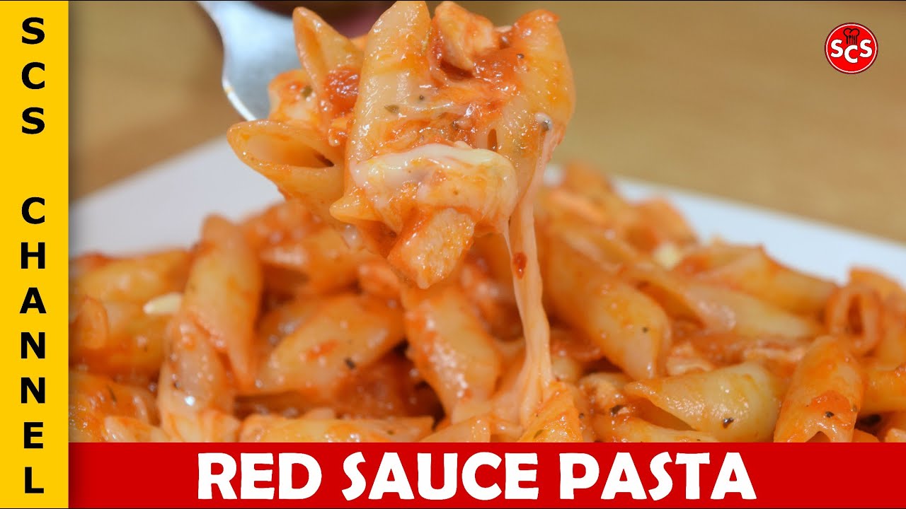 Red Sauce Cheesy Pasta Recipe – Homemade Red Sauce Pasta Recipe in Urdu and Hindi.