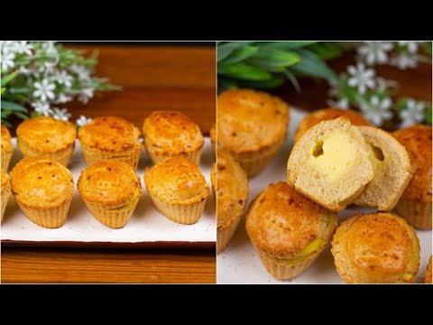 Use oven muffin baking molds. Roll out pieces of dough and cover the bottom and sides of each mold. Fill in with premade cream and cover with more rolled out dough, pinching edges very well.