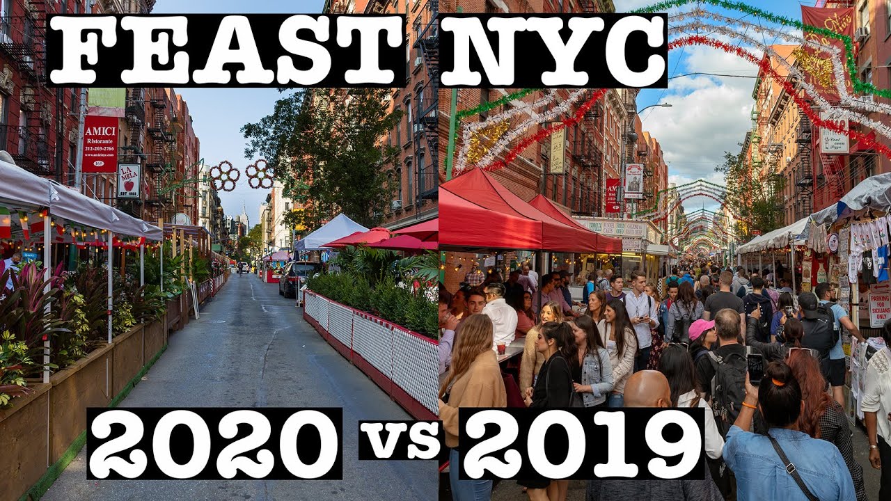 In our NYC FEAST of SAN GENNARO FOOD TOUR 2020 During COVID-19 vs 2019, we take a walk and food tour comparison along Mulberry Street in mid-September during the annual Feast of San Gennaro in Little Italy of Manhattan, directly comparing what it looked like in 2019 vs what it looked like in 2020 when most of the festivities including #streetfood vendors, rides and games were cancelled due to COVID-19 restrictions. The restaurants lining Mulberry Streets are still open with outdoor dining until 11PM during the #Coronavirus lockdown in NYC but the streets are largely empty.