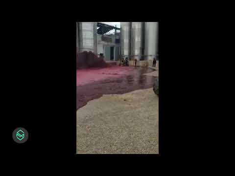 A video circulating on social media showed the moment of a large red wine spill in the yard of a winery in Villamalia, Spain.