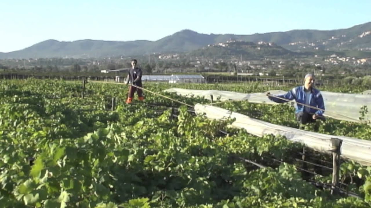 Watch as Colonna farmers save our table grapes from nasty weather by covering them! Sounds easy – watch!