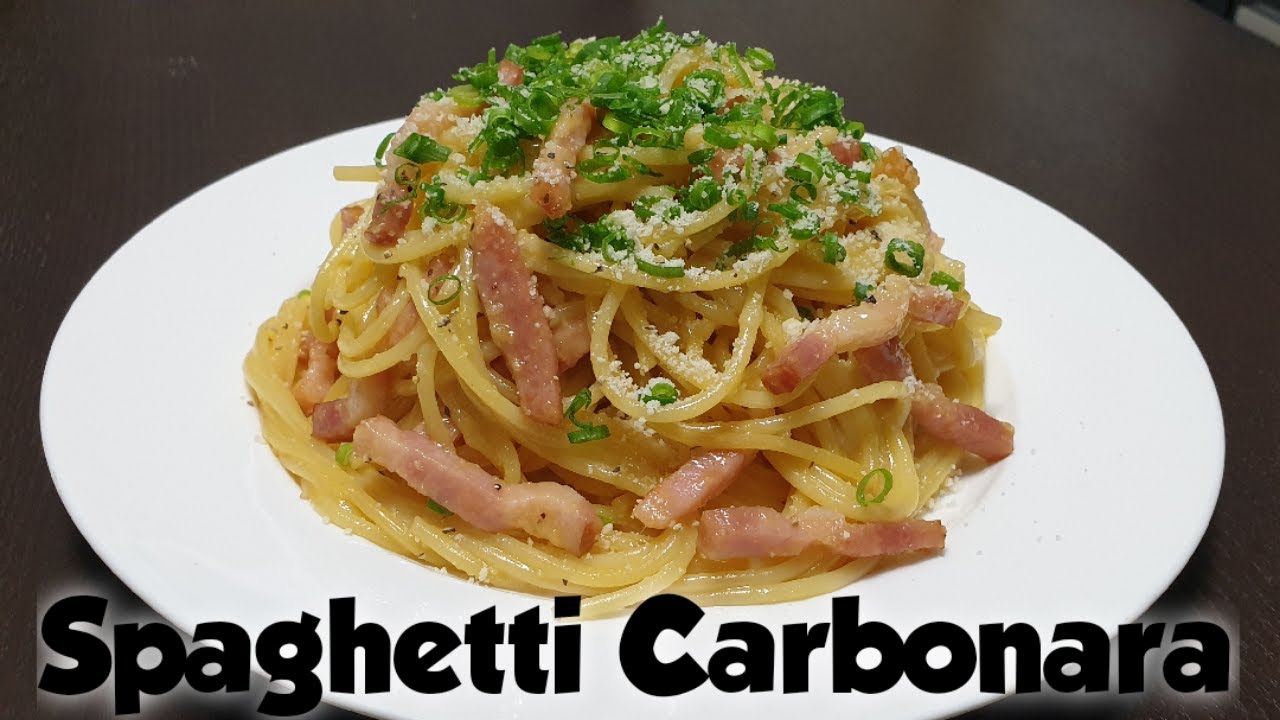 INGREDIENTS : 80g Spaghetti Pasta 30g Bacon 1 pc Egg 1 tbsp Milk 1 tbsp Parmesan Cheese 1 Garlic cloves 1/2 Olive oil 1 tbsp White Wine Spring Onion Leaves Black Pepper CarbonaraEasyitalianItalian WineItalyItaly WineSpaghettivideoVlogwineYouTube