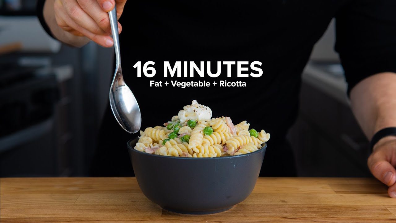 Ricotta Pasta with peas and bacon. A classic Italian pasta dish from Marcella Hazan in 16 minutes.