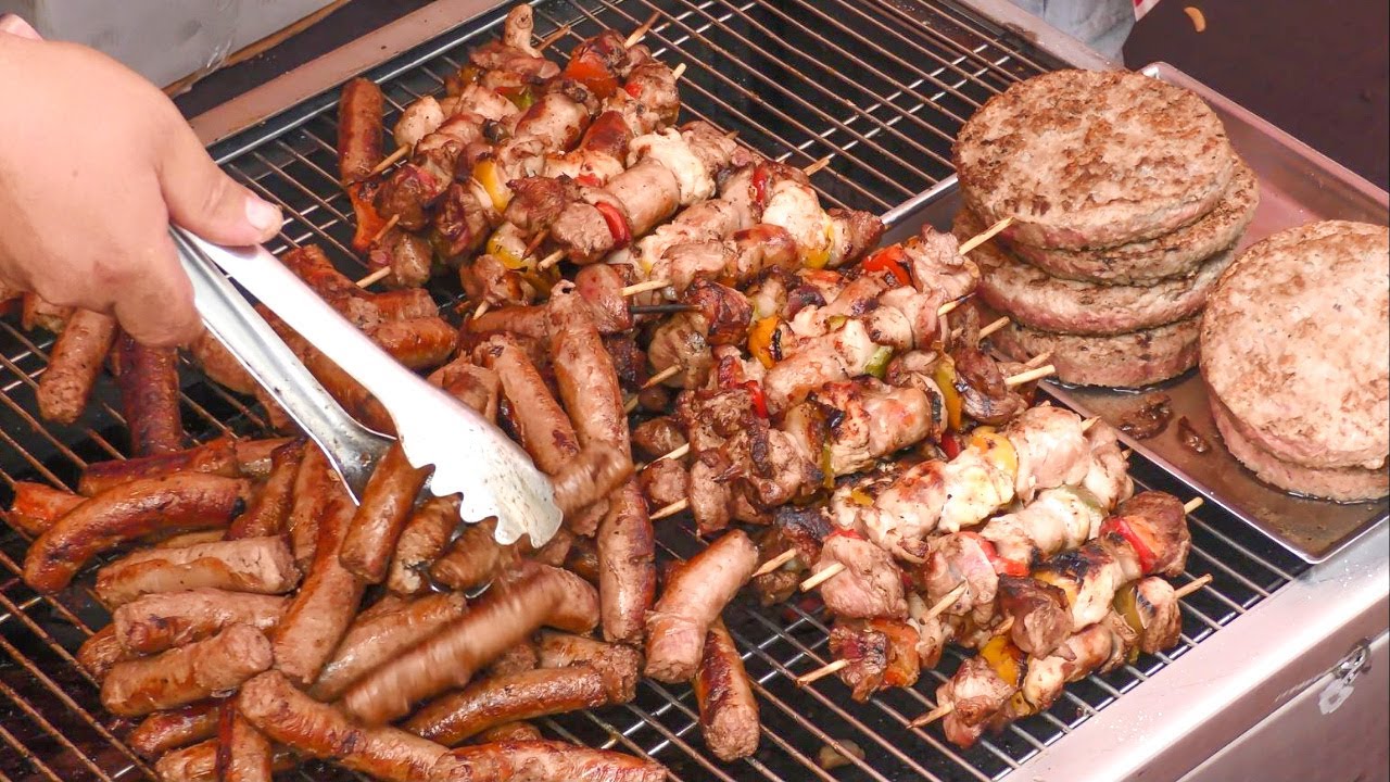 Many Huge Beef Ribs, Sliced Beef, Burgers, Sausages, Skewers.
