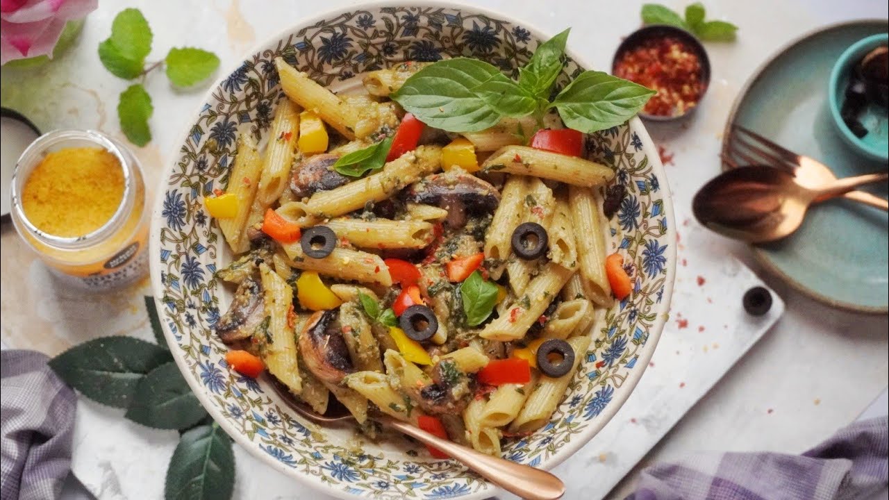 TOPIC – (VEGAN) Traditional Pesto Pasta with Pesto Sauce Recipe | Easy, Tasty & Italian Style Pesto Pasta