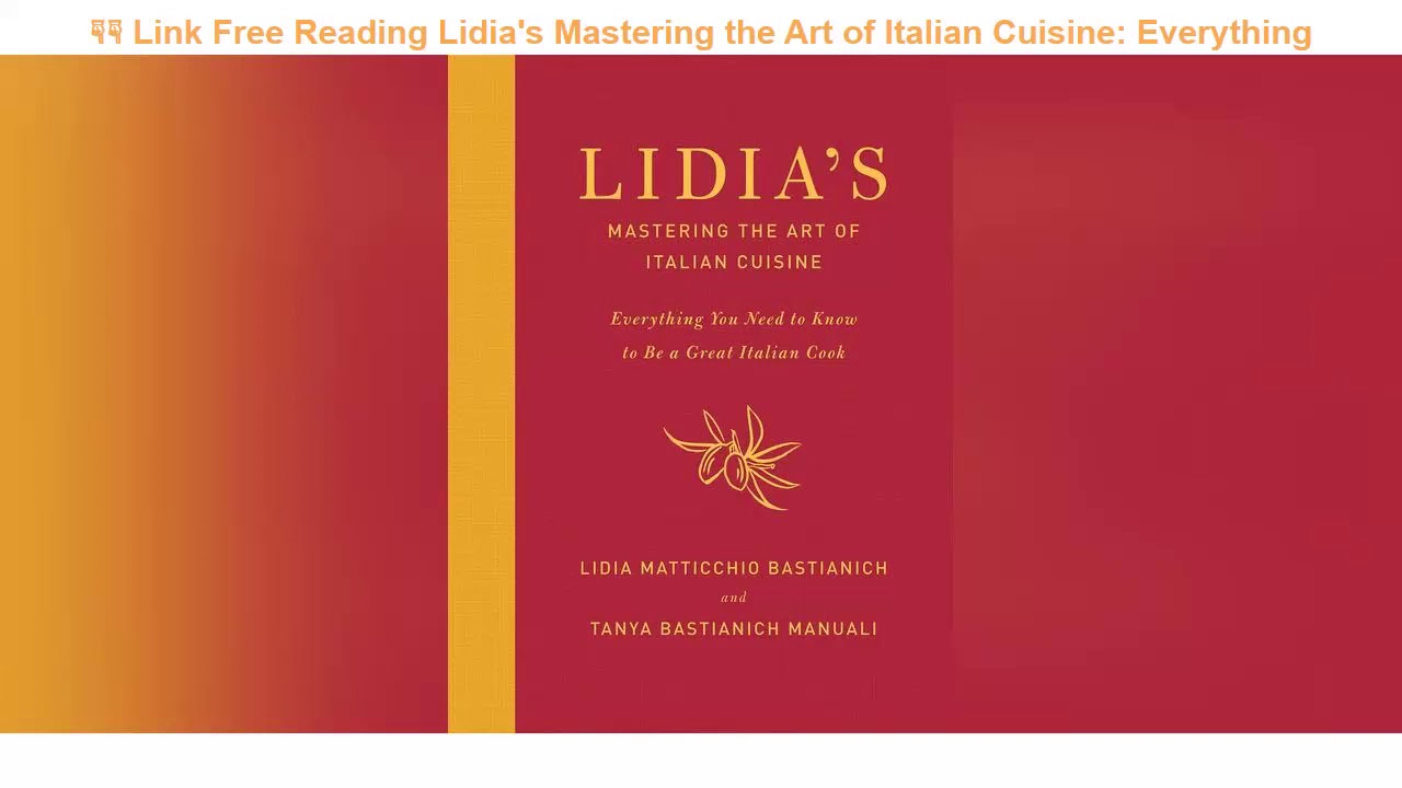 ☟☟ Link AudioBook Lidia’s Mastering the Art of Italian Cuisine: Everything You Need to Know to Be a Great Italian Cook: A Cookbook Kindle Unlimited PDF Click Link Below ☟☟ :