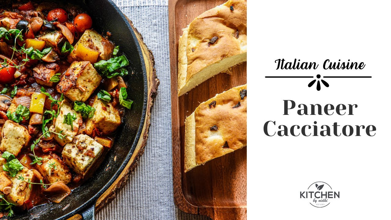 Cacciatore In Italian refers to a meal prepared “hunter-style” with onions, herbs, usually tomatoes, bell peppers, and wine. Our recipe today is roasted paneer cooked in the goodness of vegetables, wine, thyme, basil, olive, and chill flakes. This slow-cooked recipe is full of flavors and easy to make.