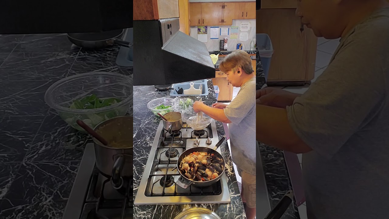 While it is simmering, Slice other lemons, and set aside. Once you have simmered the tomatoes, wine and fish stock 15 minutes. Saute yellow onions about 1 minute in olive oil. Add red onions and yellow sautéed onions to the stockpot. Cook 5 minutes and then start adding seafood, longest cooking items first. (We used snapper, mussels, shrimp, and small crabs added in that order) DO NOT remove them from their shells, this enhances the flavor and appearance of your soup.