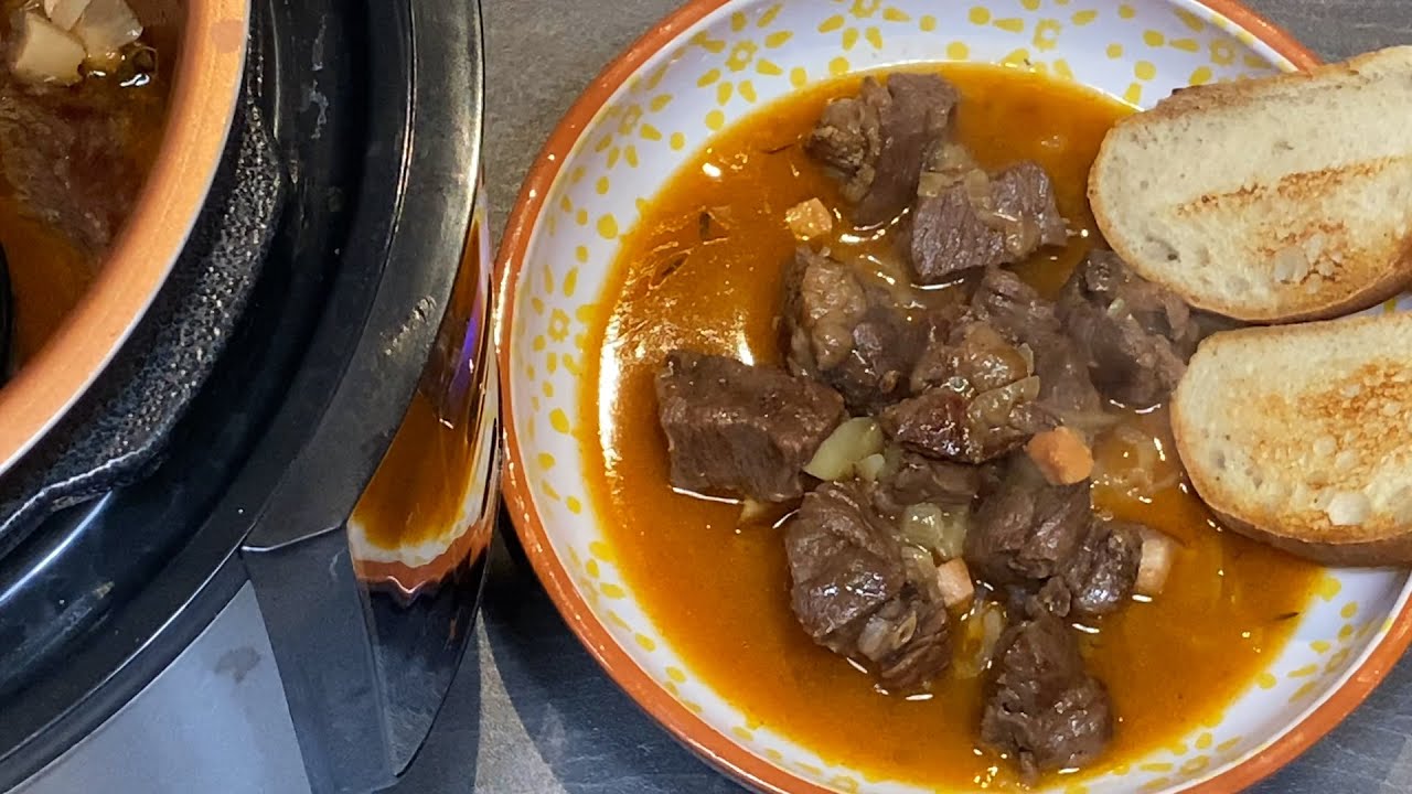 This is a little bit different stew than traditional British stew, but you will be surprised how delicious it is. No flour, red wine but pancetta, cumin, and smoked paprika. This is a pressure cooker version of Gennaro Contald’s recipe “Goulash Tirolese”. He is one of my favorite chefs and this recipe did not disappoint me at all.