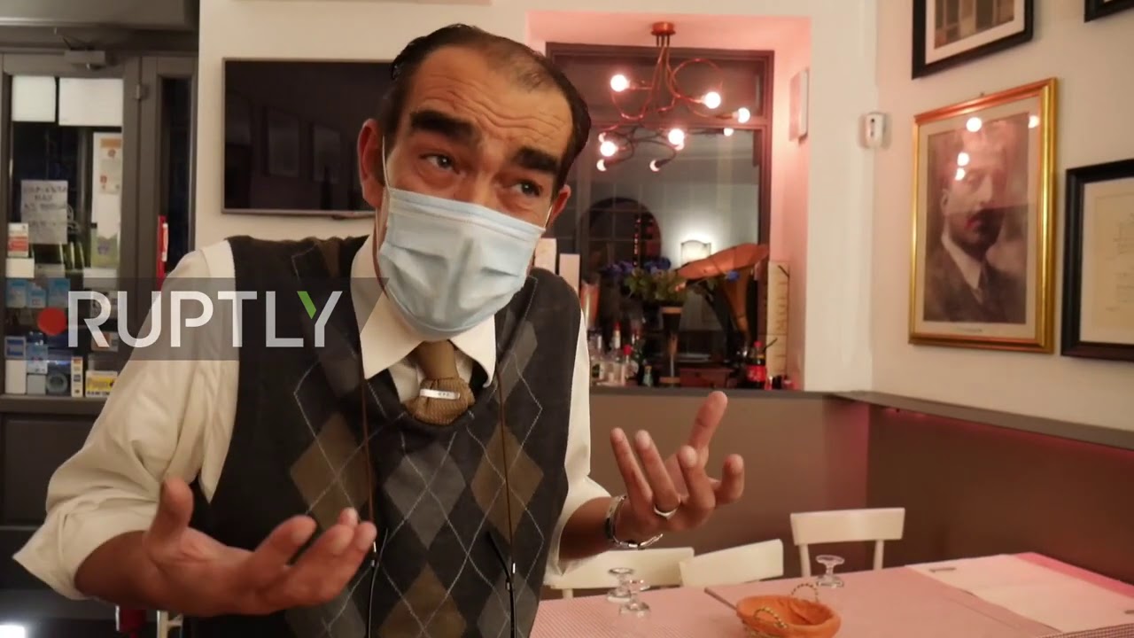 Rome’s restaurant workers and locals reacted against new COVID-19 restrictions, which forced bars and restaurants to close at 6:00 pm local time (5:00 pm GMT), in Rome, on Monday.
