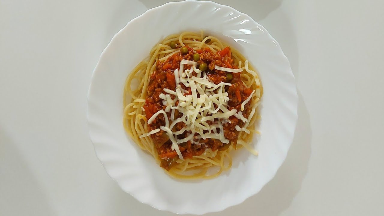 Ingredients for Italian Spaghetti Bolognese with Minced Meat and Mixed vegetables