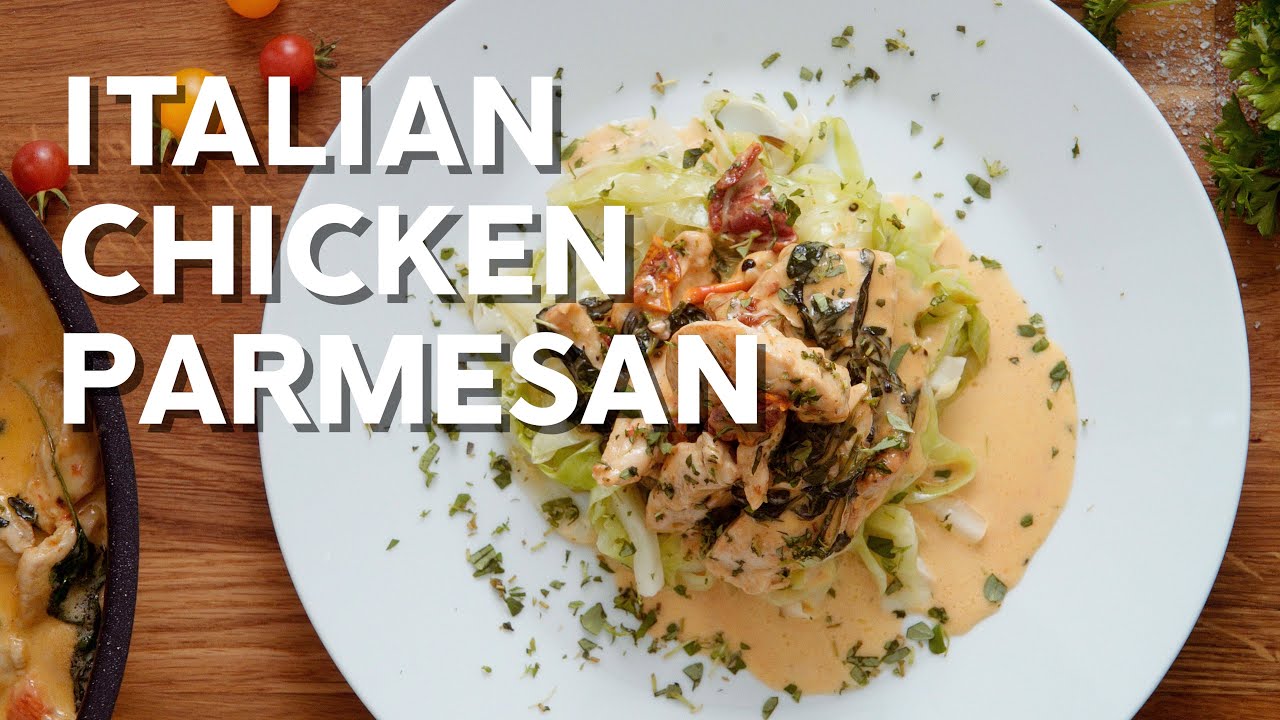 A simple, creamy chicken parmesan dinner with the added tang of sundried and regular tomatoes. Serve it on top of butter-fried cabbage strips in place of pasta. A true keto success! Recipe: