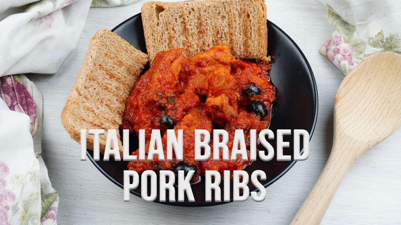 This tasty dish is a classic here in tuscany, slow cooked pork ribs with black olive in tomato sauce, it’s perfect now in autumn and winter. This ribs are wonderful with a bit of bread to make ” Scarpetta” ( when you use the bread to eat the sauce and clean the plate ) but you can also use the sauce for seasoning any kind of pasta, it’s worth it!!!!! It’s a very easy recipe but the outcome is great!!!