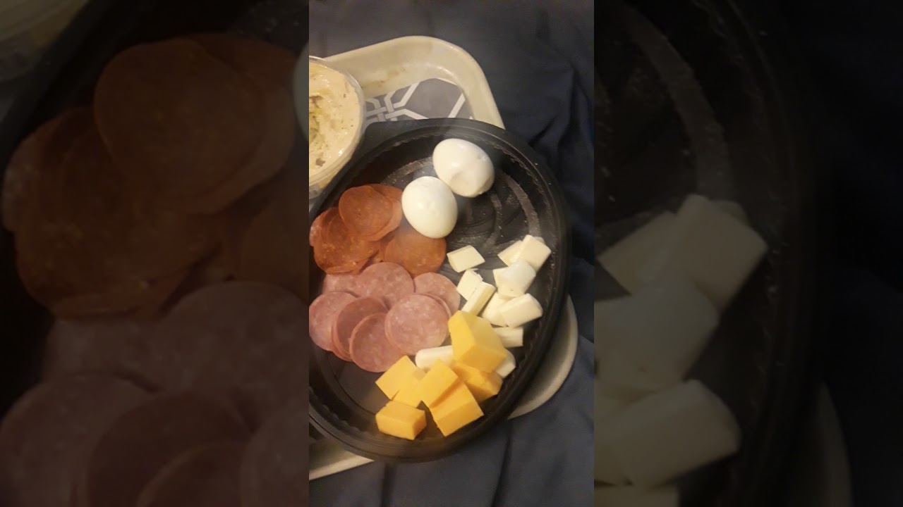 Antipasto consist of salami ,pepperoni, cheddar cheese ,mozzarella cheese, hard boiled eggs, garlic hummus and for veggies cucumbers ,pickles,pepperoncini ,radishes and homemade low carb chips Antipastocamera phonefreeGlassitalianItalian WineItalyItaly WinenightSaturdaysharinguploadvideovideo phoneVlogwineYouTube