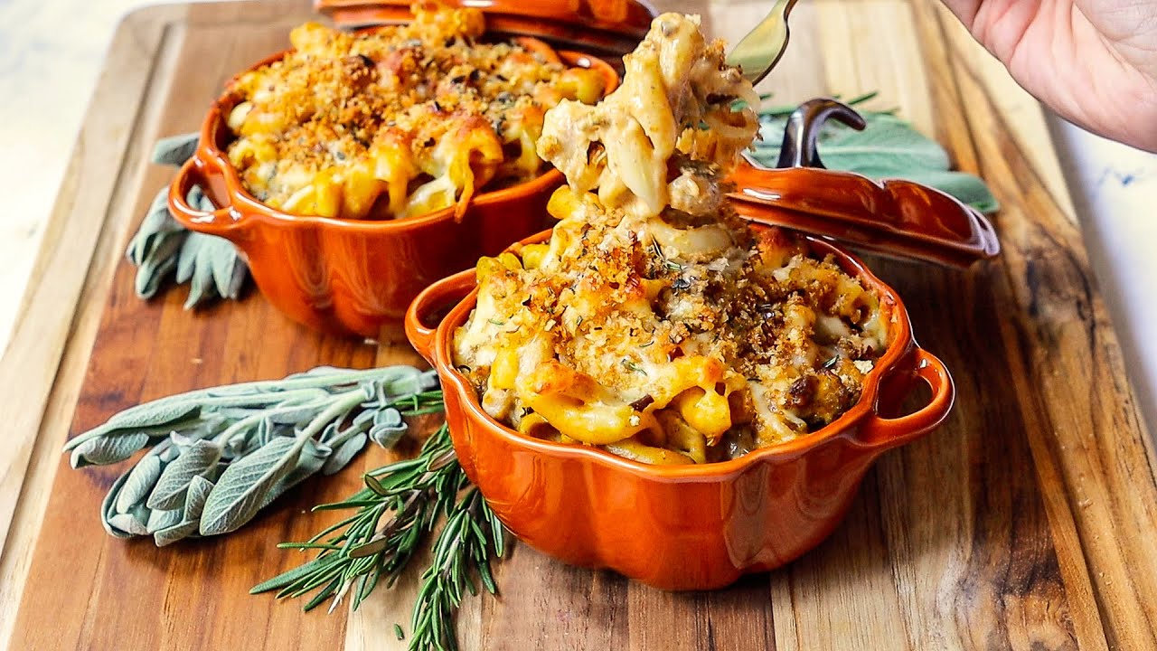 Enjoy the flavors of fall with this comforting pumpkin mac and cheese with Italian sausage, a 3 cheese pumpkin mornay sauce, and sage-rosemary breadcrumbs for a creamy dish perfect for Thanksgiving or any cold day.