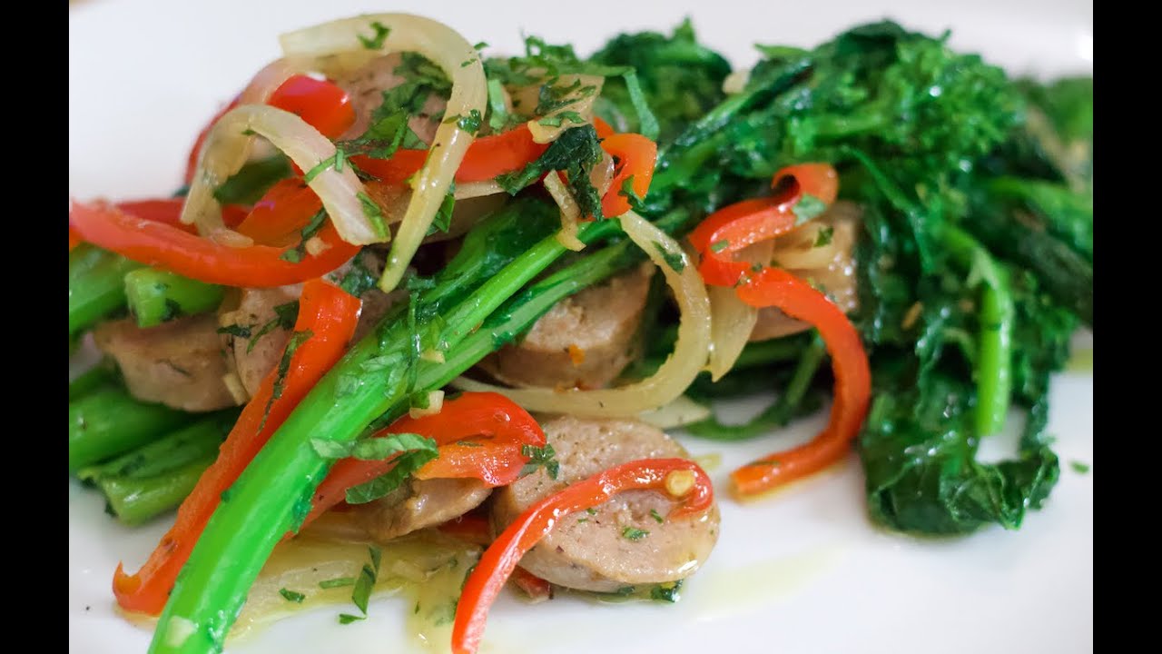 • Add the rapini and ½ of the parsley. Cook for 3 minutes.