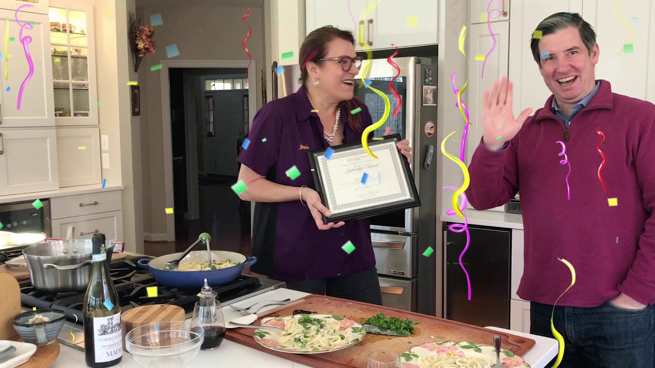 I invited my former colleague to have lunch in Josie’s FUN Kitchen – I told him that he would be a guest during a taping. What he did not know was that I was going to present him with a Leadership Award from PCMA – Check out how I make this delicious creamy pasta dish!