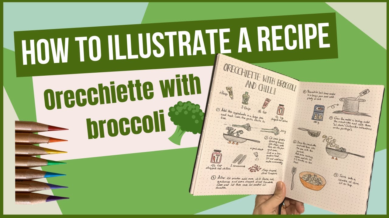 Do you want to LEARN HOW TO ILLUSTRATE A RECIPE (in this video it will be “orecchiette with broccoli and chilli”) in the most easy way possible using colour pencils, a black pen and a “bullet journal” style book?