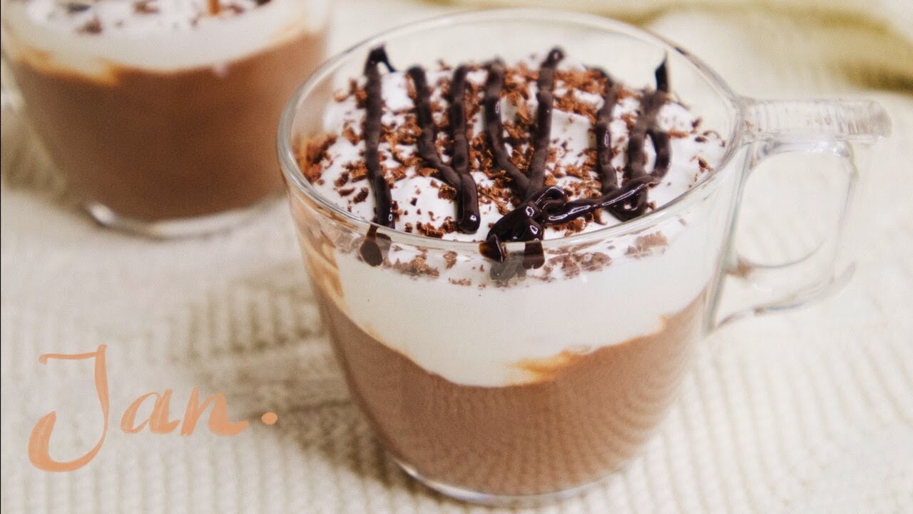 – Pour in , with your favourite mug, add cold whipped cream on top, and some grated chocolate and chocolate sauce.