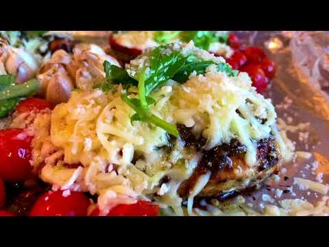 – Marinate chicken with garlic salt, pepper, olive oil, 1 tbsp Italian seasoning and half a cup pesto.