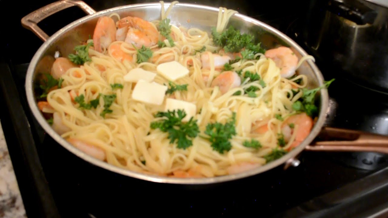 Linguine with shrimp is a simple, yet delicious meal that combines the flavors of the Mediterranean. This recipe is for four people.
