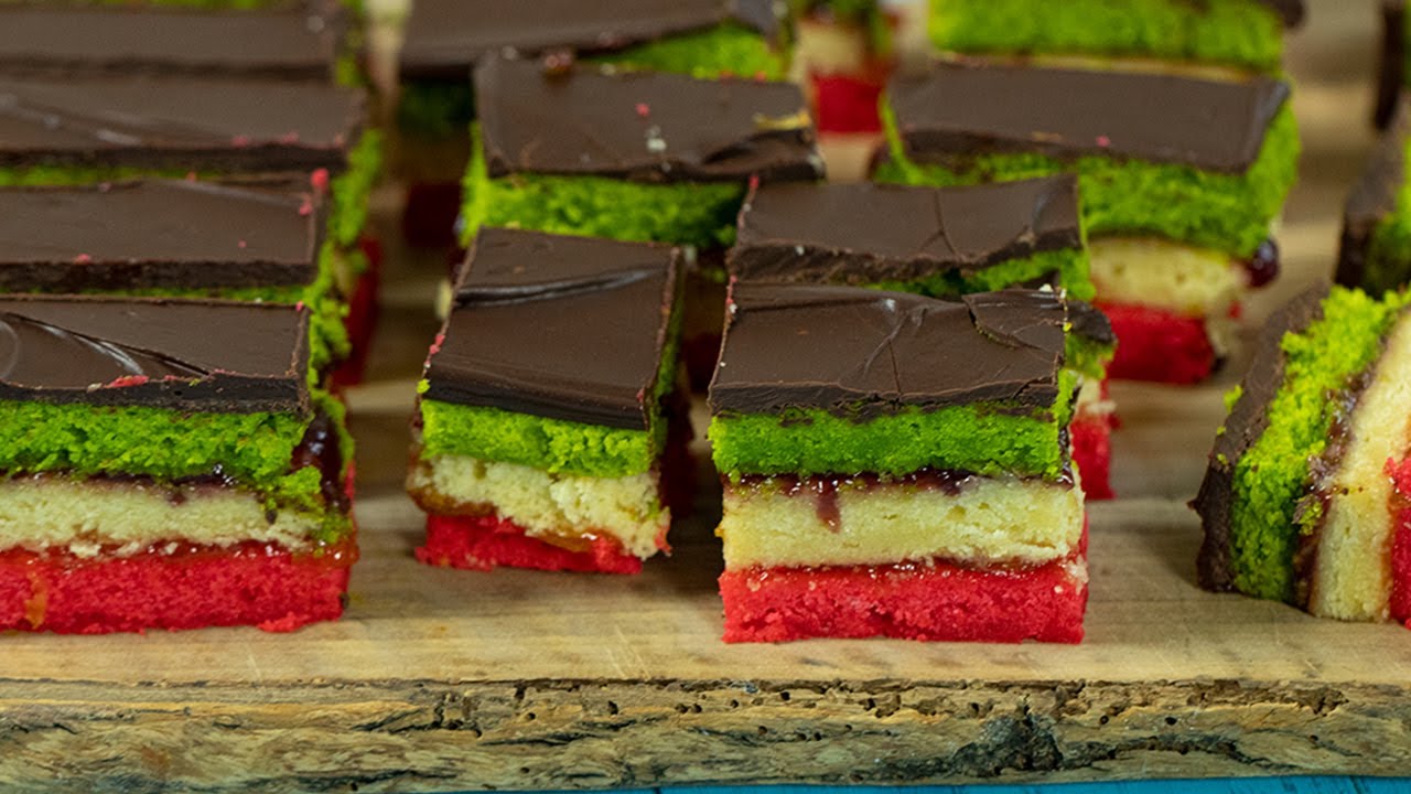 These Italian Rainbow Cookies will brighten up any cookie platter. Layers of almond cake are sandwiched together with raspberry and apricot jam and then iced with a layer of chocolate. These cookies are so easy to make and taste way better than the ones sold in bakeries.